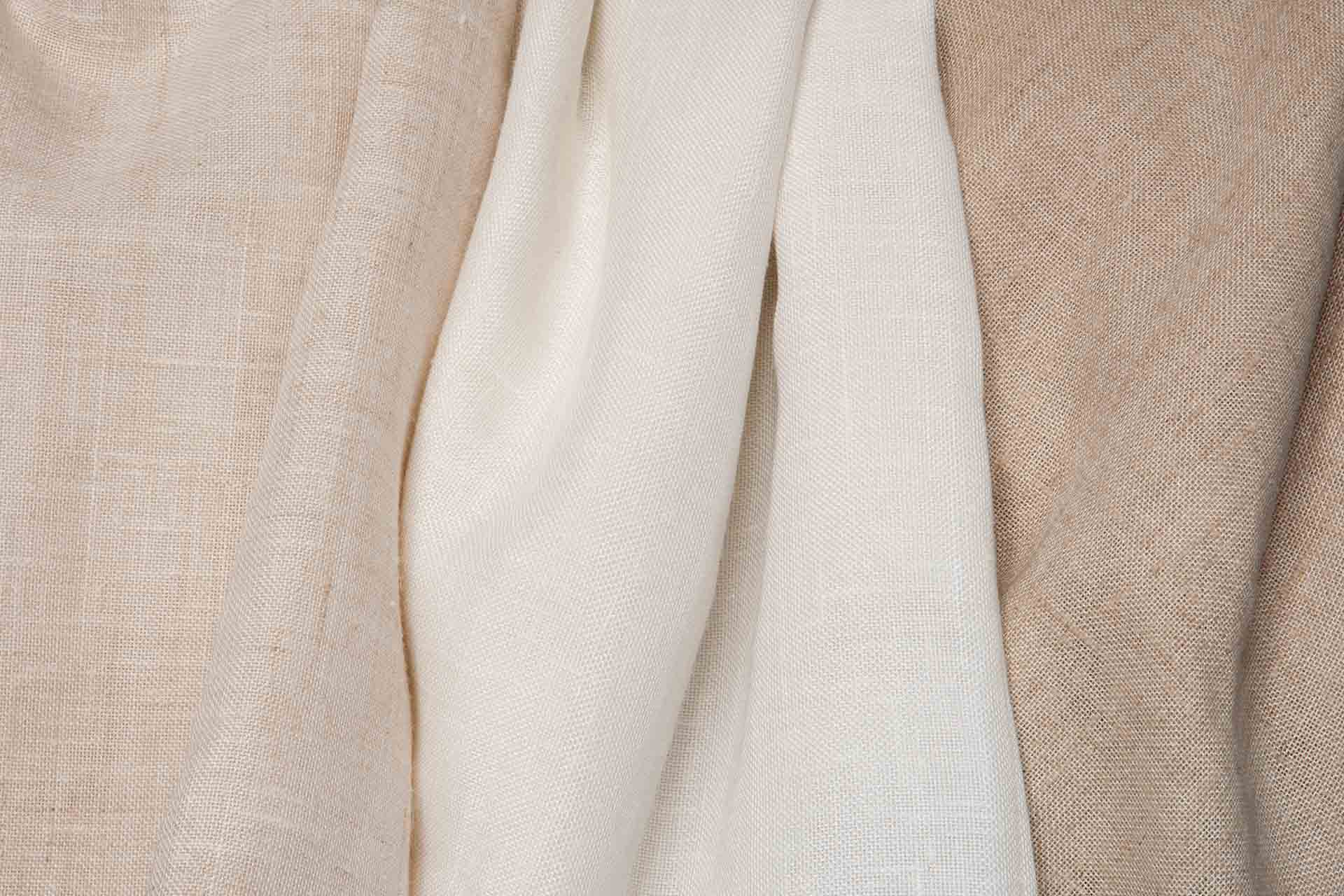 Tendaggi a tinta unita bianchi, naturali e avorio. SuperMussola - Lino dal 10% al 100% - Pongè e Bottonato seta - Tubico in poliestere - Georgette - Ignifugo in 110 e 260 gr.